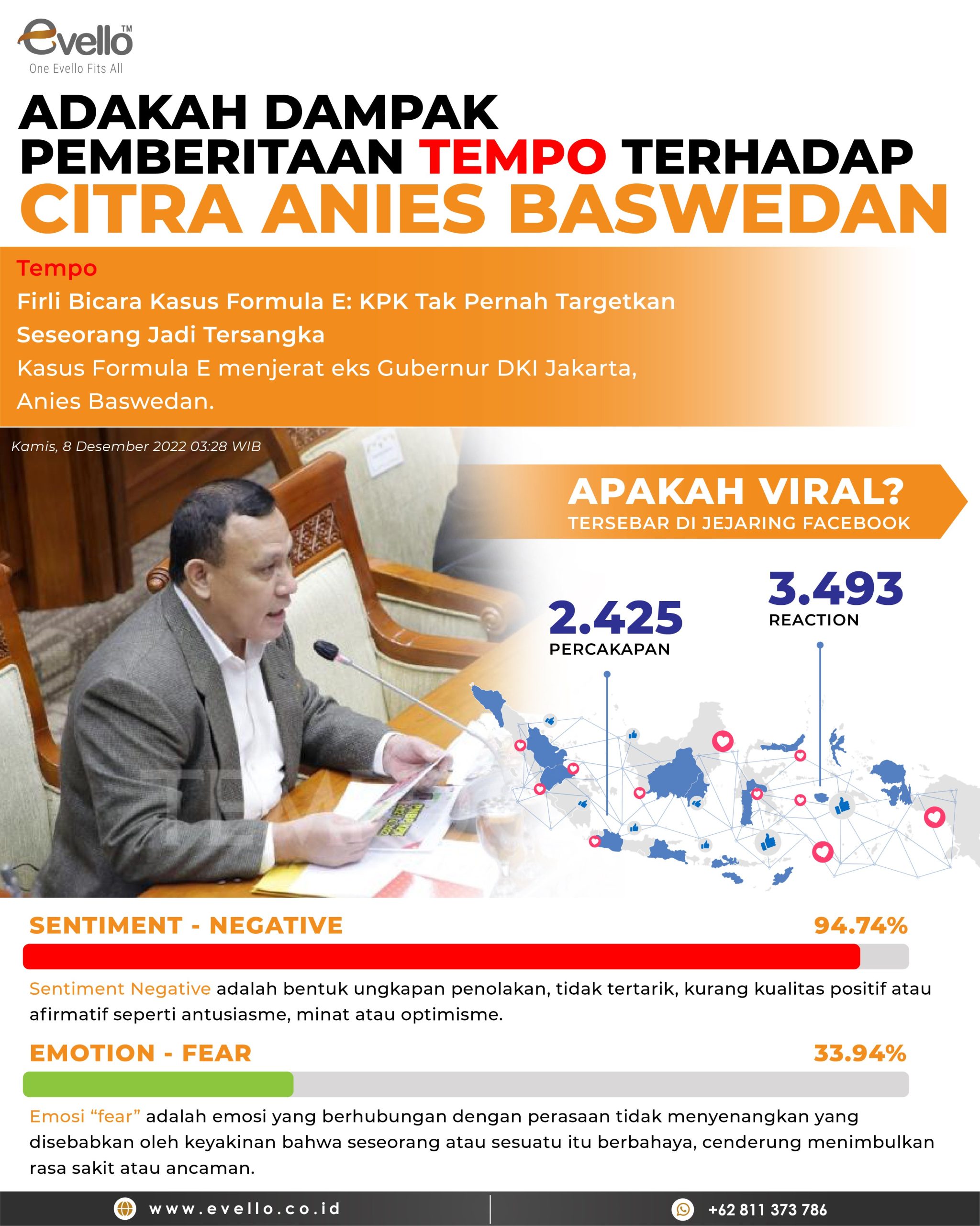 @tempodotco pada Kamis (8 Desember 2022) melalui laman facebooknya mengangat berita berjudul “Firli Bicara Kasus Formula E: KPK Tak Pernah Targetkan Seseorang Jadi Tersangka Kasus’. Pada